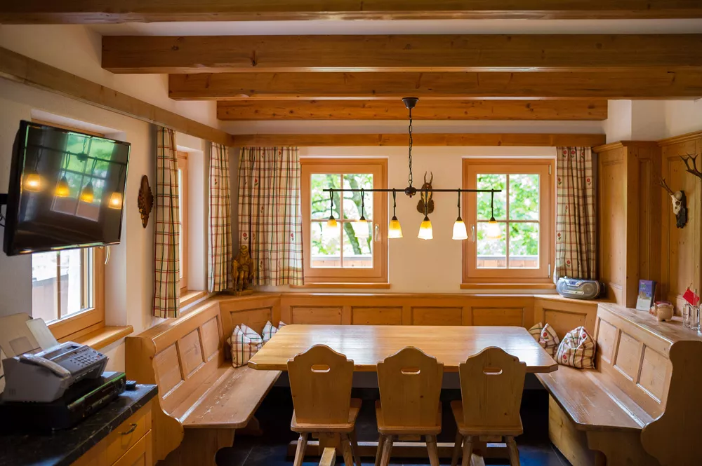 Ob zum gemeinsamen Essen, einem Spieleabend oder zu einer anregenden Plauderrunde -  in der Wohnstube trifft man sich nur zu gern. Im komplett eingerichteten Küchenbereich kann jeder seine Reserven für den Urlaubstag auftanken: